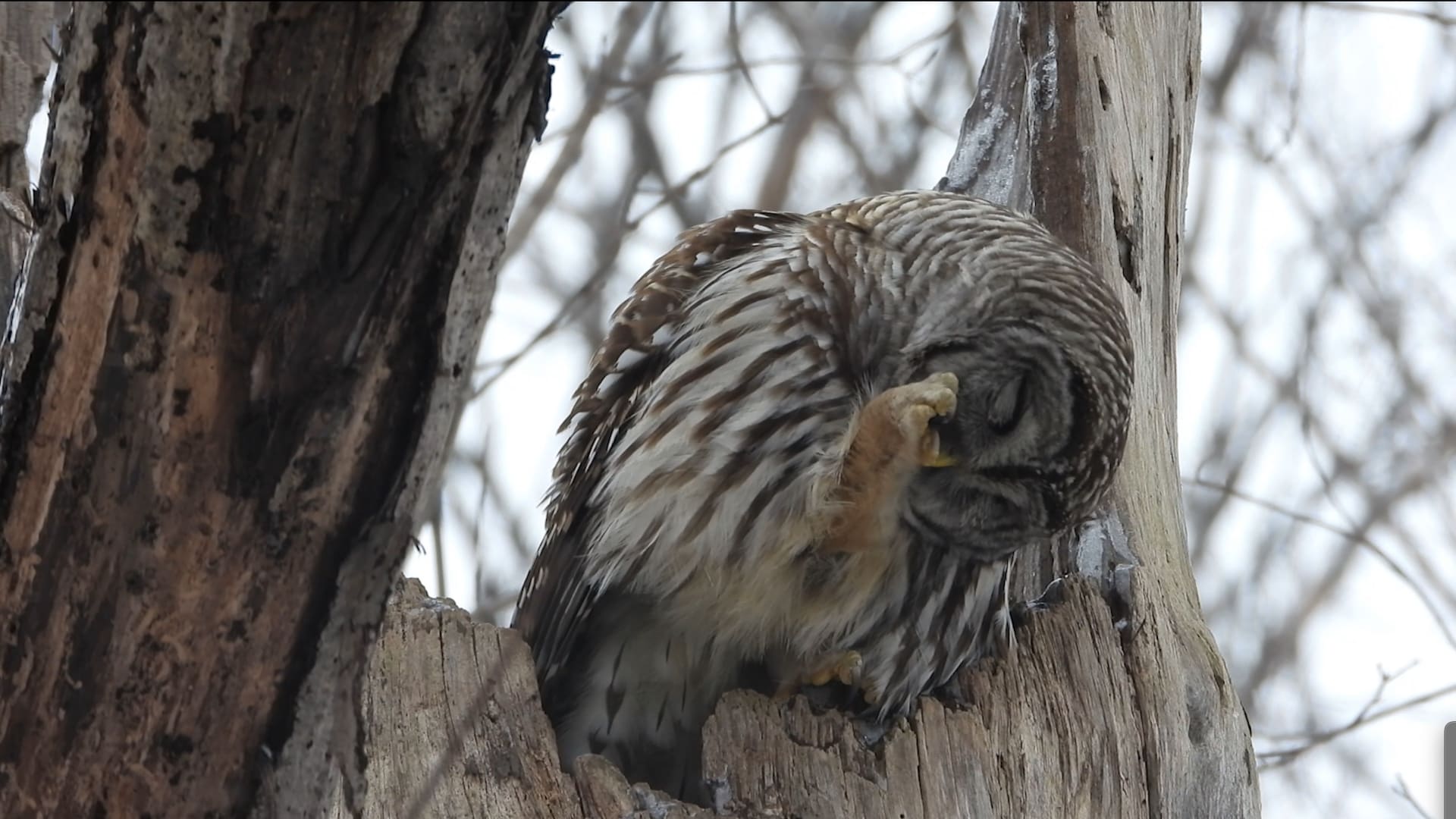 وفي الفيديو، تبدو البومة، وهي من فصيلة “بوريل”(Boreal)، وكأنها بدأت بالسعال، وسرعان ما تَخرج كتلة…
