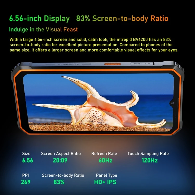 هاتف المهام الوعرة BV6200 أندرويد 13 شاشة 6.56 بوصة مواصفات 4 جيجابايت + 64 جيجابايت بطارية 13000 مللي أمبير